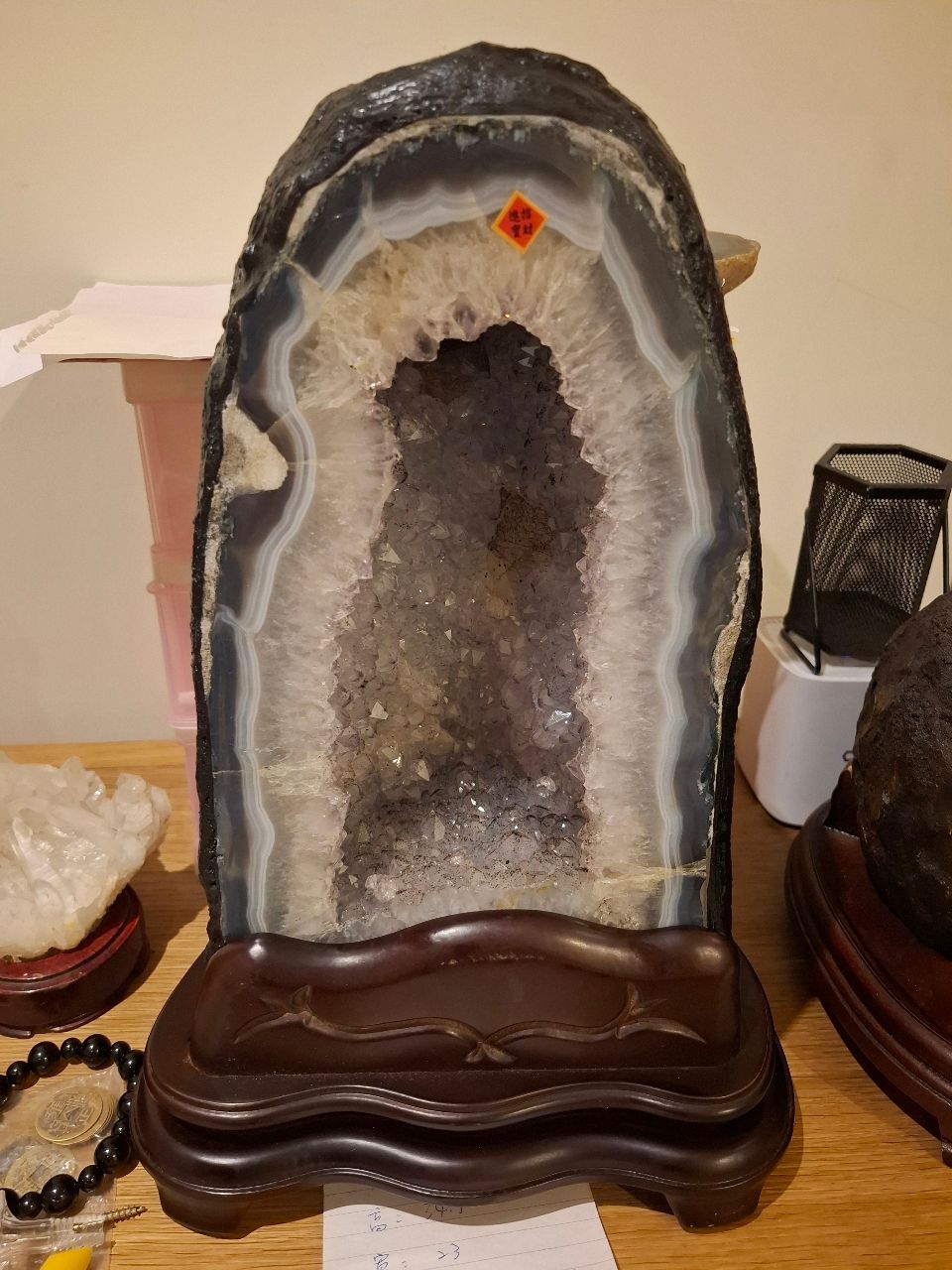 # 特色:有紫度、有鈦金(象徵能量強、財氣、金氣、偏財)、瑪瑙邊完整,擺放氣勢足