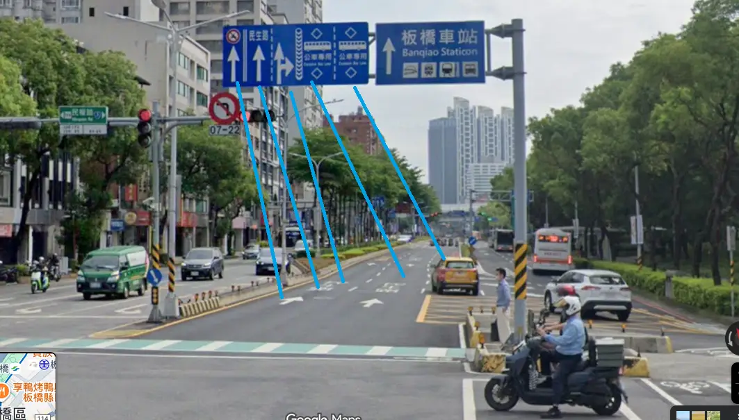 的板友們,從三角公園處的民權路騎到板橋分局前的十字路口時,做法是(繼續往前騎、