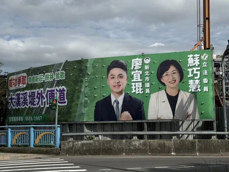 新北市議員第八選舉區(土城、樹林、三峽、鶯歌)議員廖宜琨已掛上與蘇巧慧聯名看板