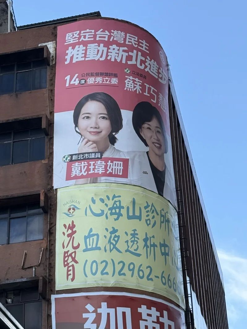,並附上懸掛地點周邊有關的的政績;第五選區(板橋)議員戴瑋姍也已掛上蘇巧慧聯名