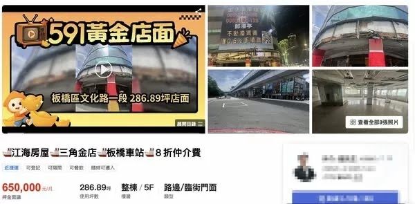 經查《591房屋交易網》,該透店1~5層面積共286.9坪,以每月65萬元開價求租,換算每
