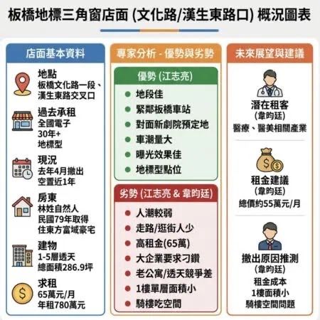 ▲板橋地標三角窗資料整理。(AI協作/記者項瀚製作,經編輯審核)