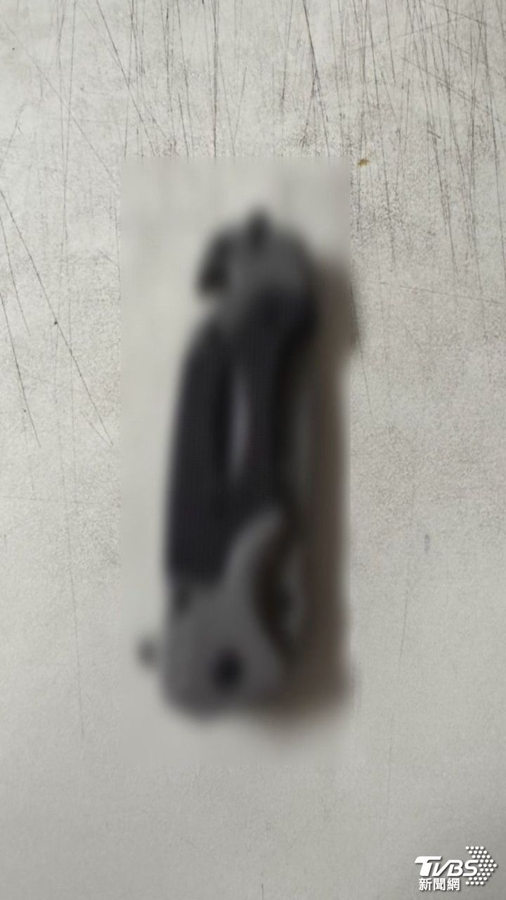 警方於現場查扣陳男從車上拿出的摺疊刀。(圖/TVBS)