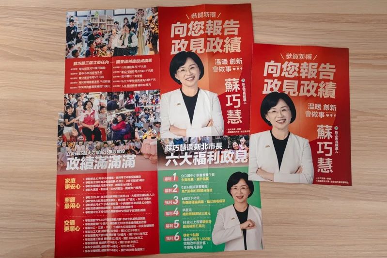 民進黨新北市長參選人蘇巧慧今天退出首波紙本政績文宣。圖/蘇巧慧辦公室提供