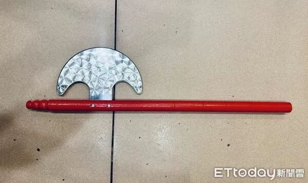 持有一把陣頭常見的「月斧」,並未實際攻擊他人,現場也無人受傷。