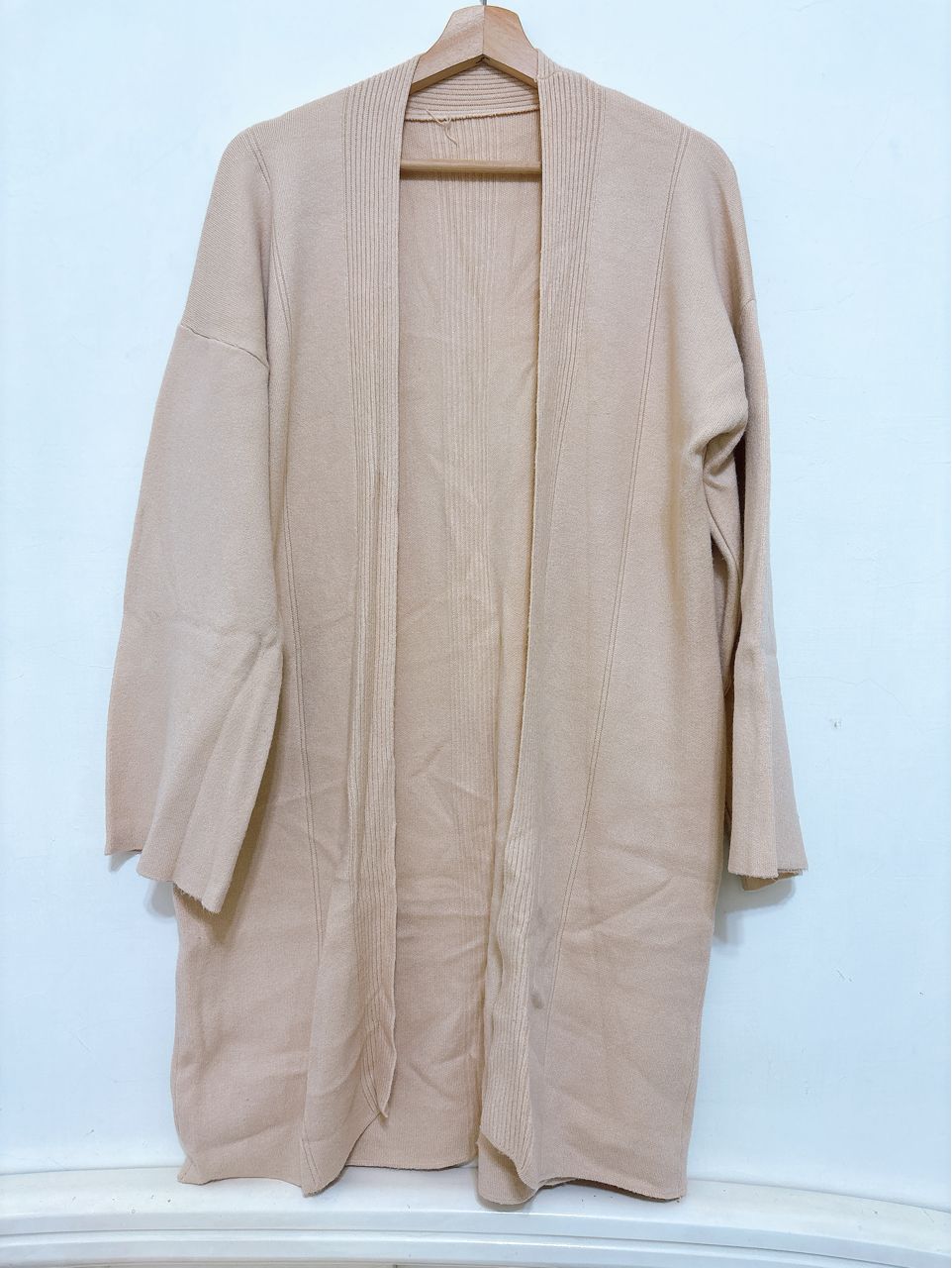 九成新 粉膚色 針織寬袖罩衫