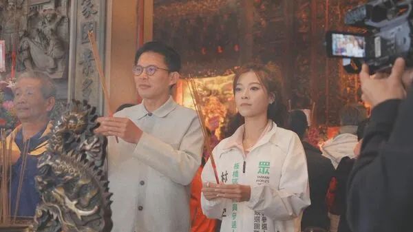民眾黨主席黃國昌17日走春拜廟,未料遭遇民眾嗆聲,陪同的同黨市議員參選人林子宇當