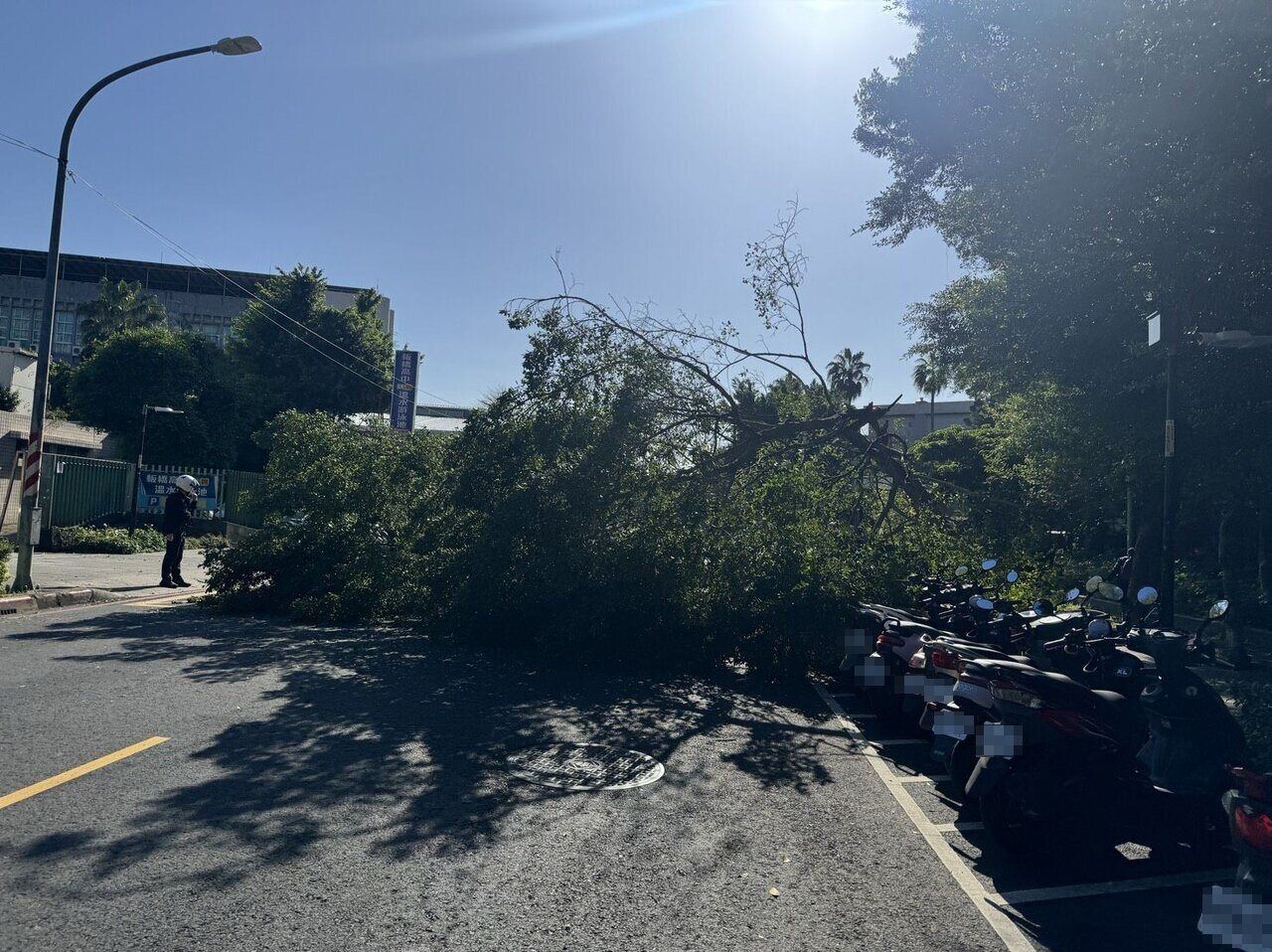 板橋體育場旁行道樹突倒塌 10輛機車遭波及警急拉封鎖線