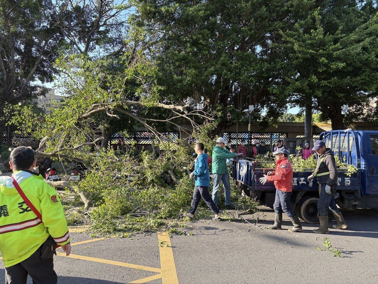 板橋區公所人員到場清除倒塌的樹木。記者黃子騰/翻攝