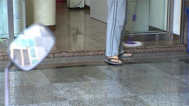 旁邊店家首當其衝大遭殃,隔天一早,水都還沒退,拿著拖把、工具,忙著清理,只是大