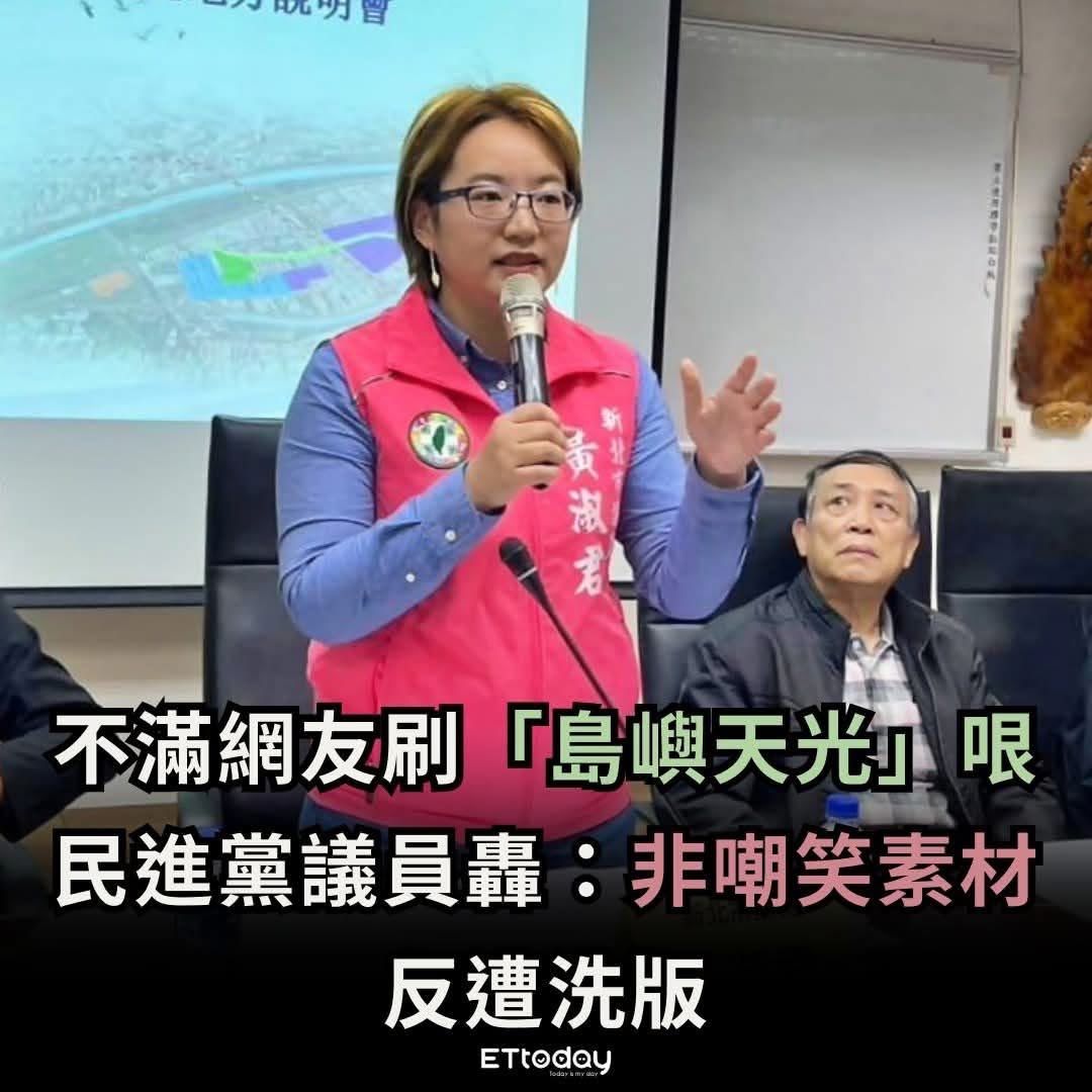民進黨新北市議員黃淑君則在18日批評「最近看到有些人,用島嶼天光這首歌來嘲諷,但