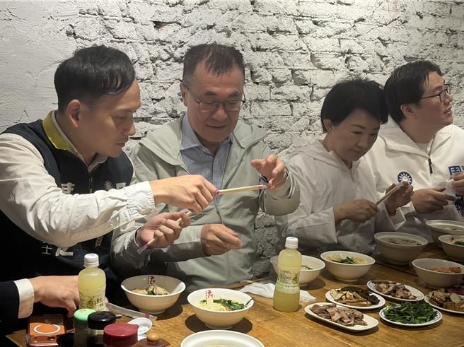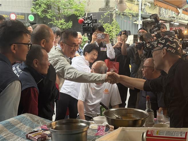 李四川、盧秀燕到板橋在地老店品嘗美食。(王揚傑攝)