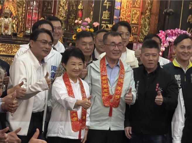 台中市長盧秀燕今(25)日北上輔選國民黨新北市長參選人李四川,2人先到板橋慈惠宮