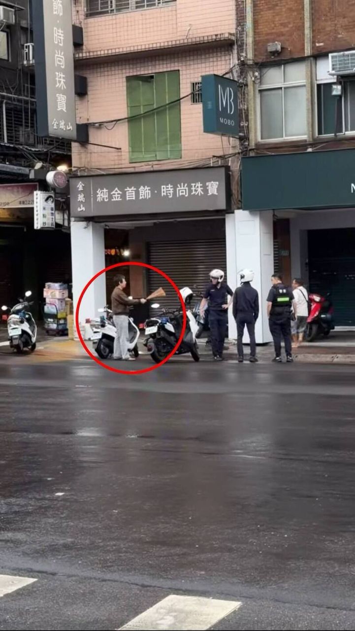 警方到場調解時,對街突然走來一名大叔,手持大把祭祀用線香,緩步趨前詢問員警:「