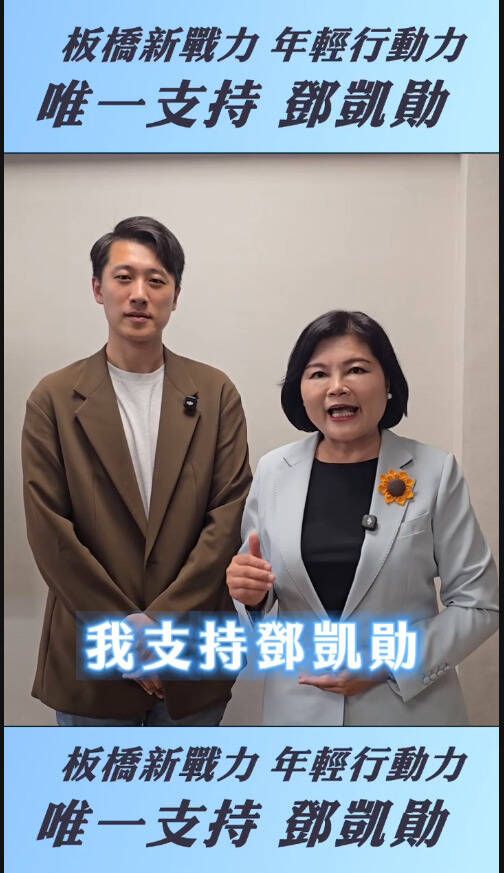 國民黨新北市板橋區市議員參選人鄧凱勛今(27)日發布雲林縣長張麗善推薦影片,肯定