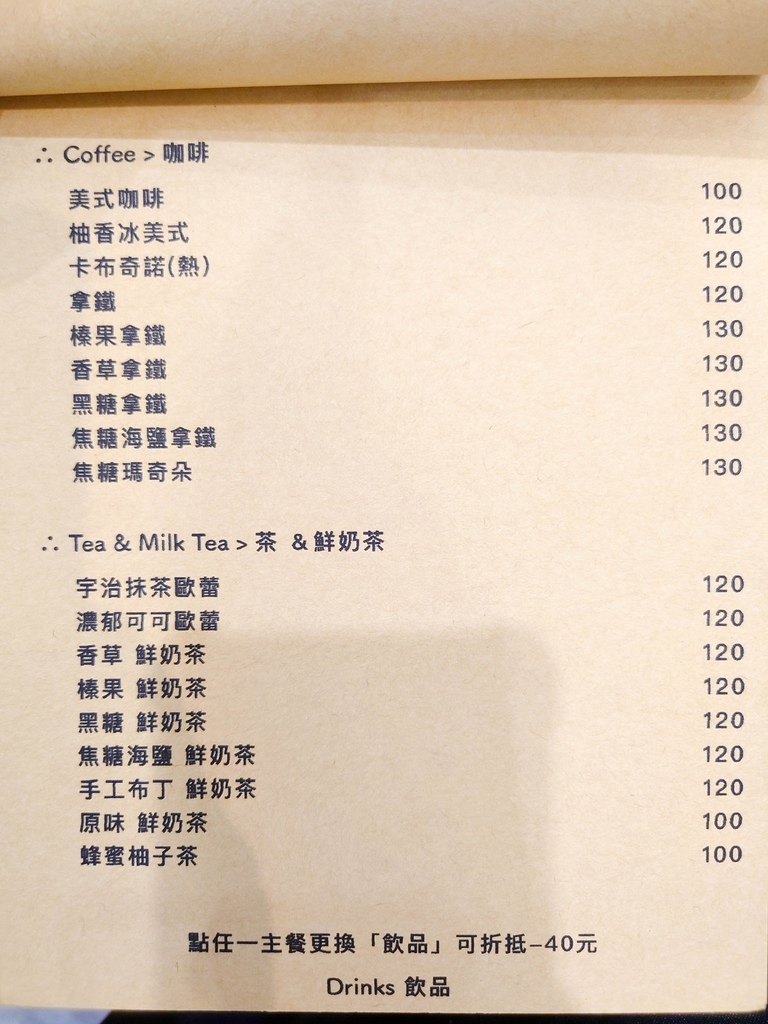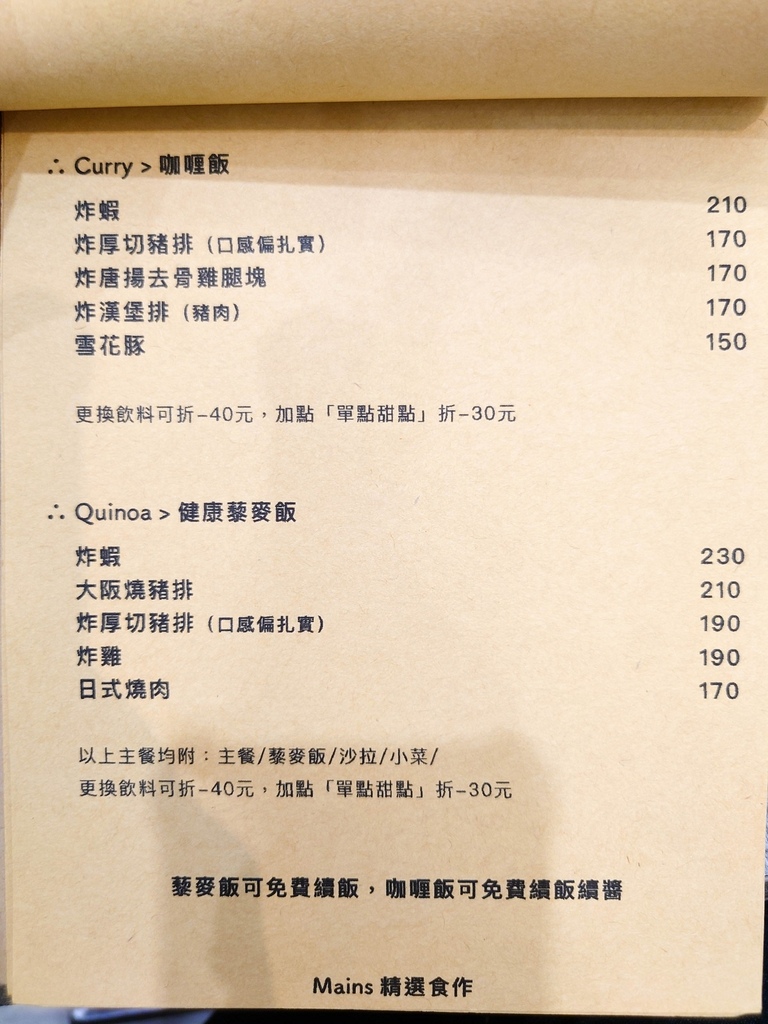 包括早午餐、咖哩飯、甜點、咖啡等,