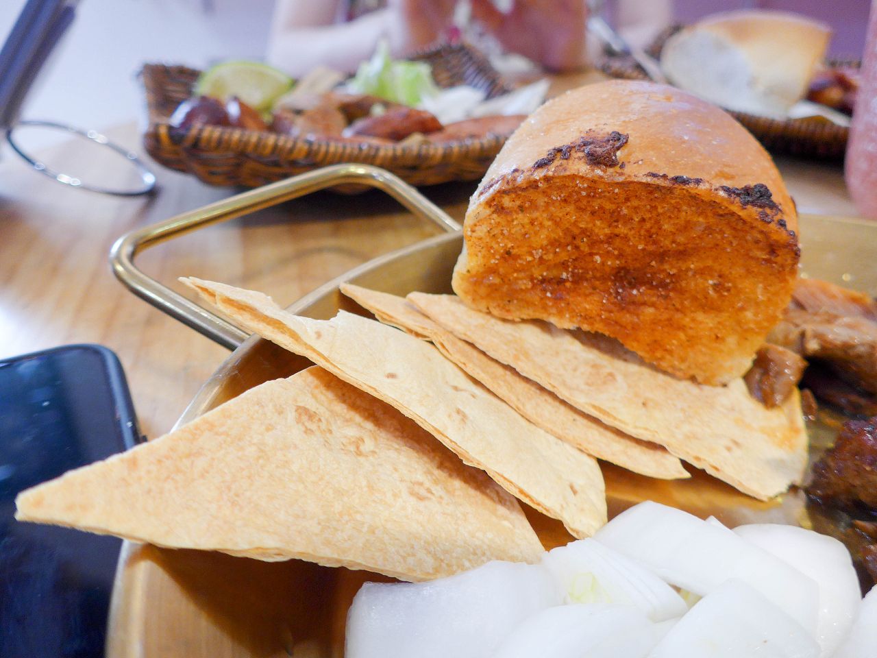 都有附上洋蔥、手工玉米餅、半塊大蒜麵包