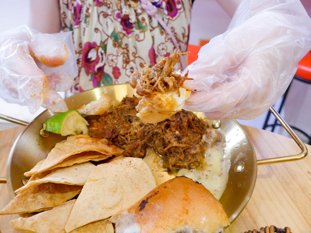 軟嫩成絲又多汁的手私豬肉也很適合搭著玉米餅吃