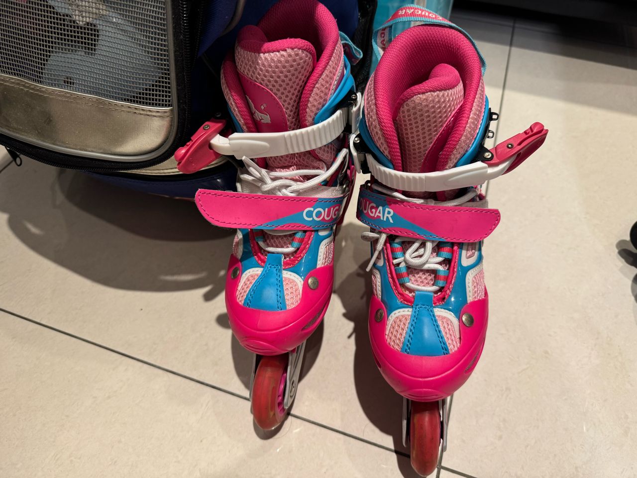 另附直排輪袋,小女童護具,安全帽。