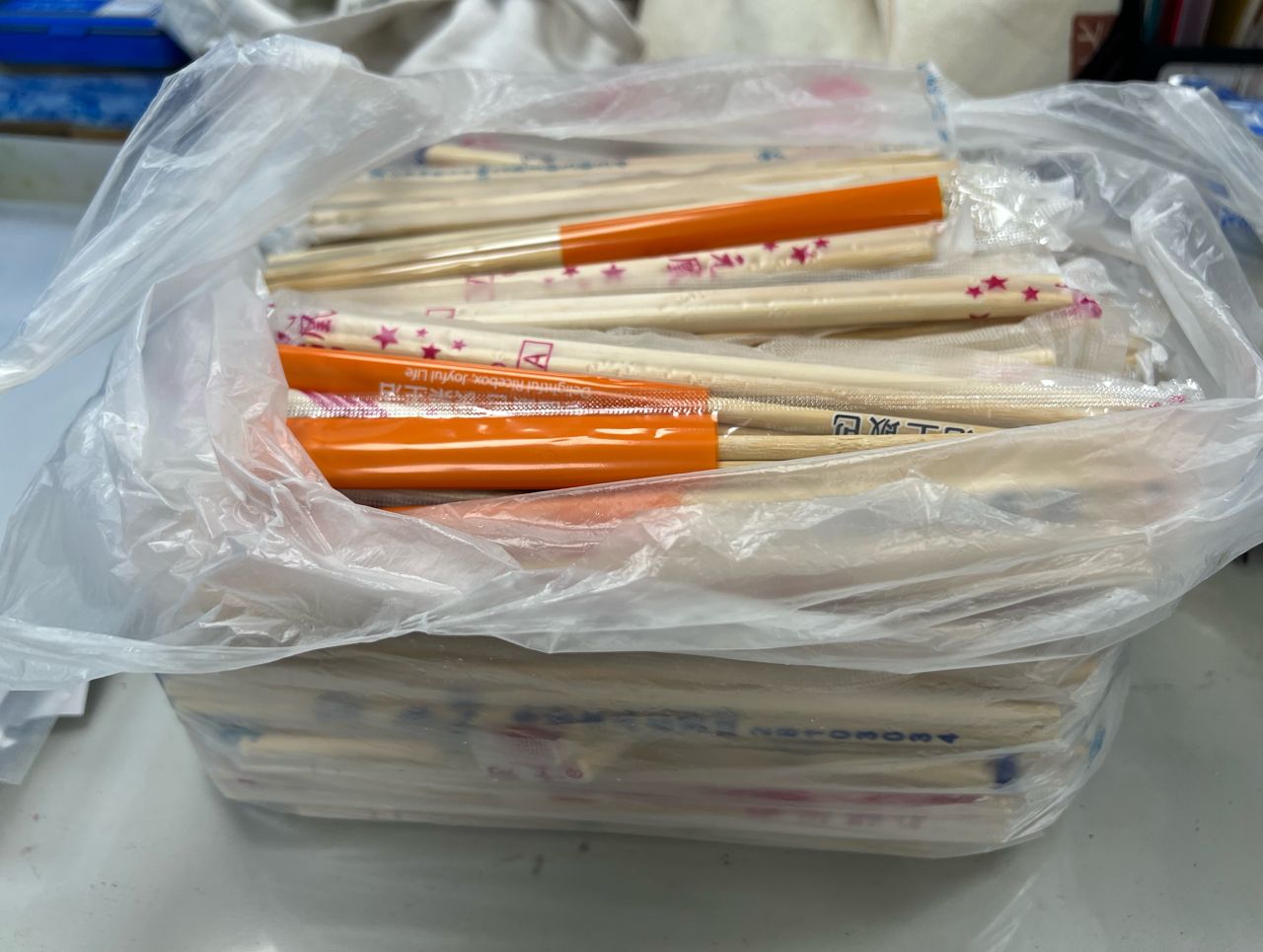 一大包免洗筷子,有需要者可取用,謝謝