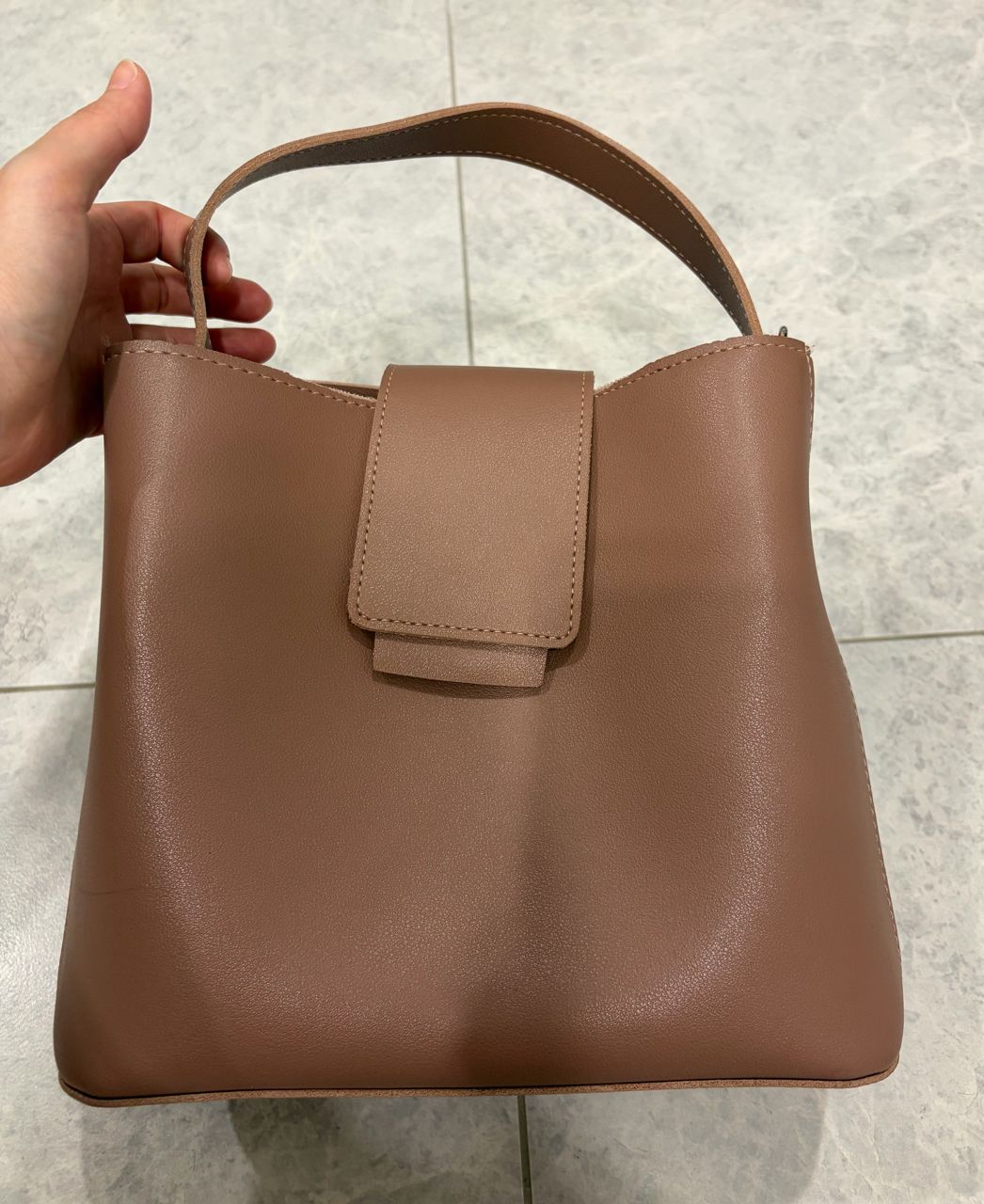 #3 真皮奶茶色掀扣包