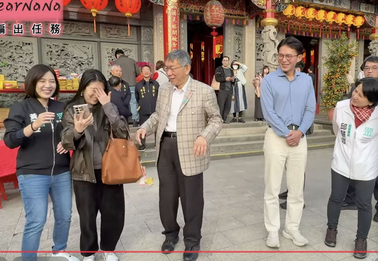 而該支持者似乎意識到不對,轉頭要找柯文哲合照,柯趕忙示意沒關係,另一邊的黃國昌