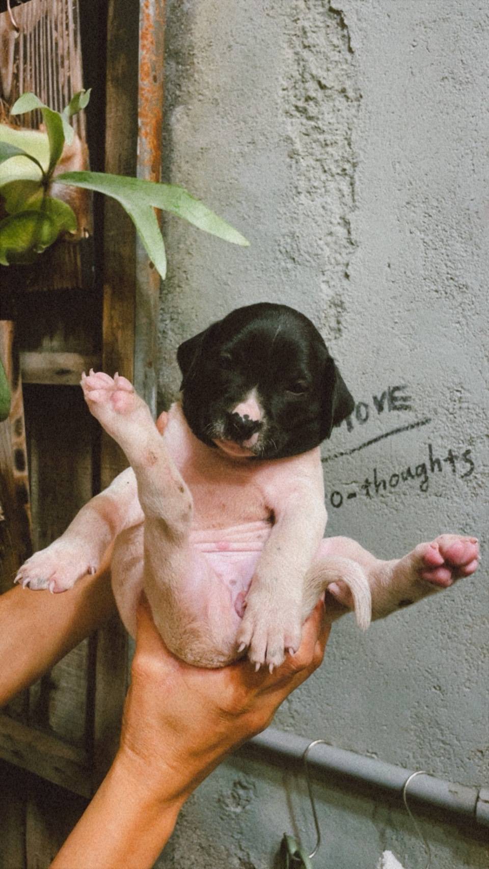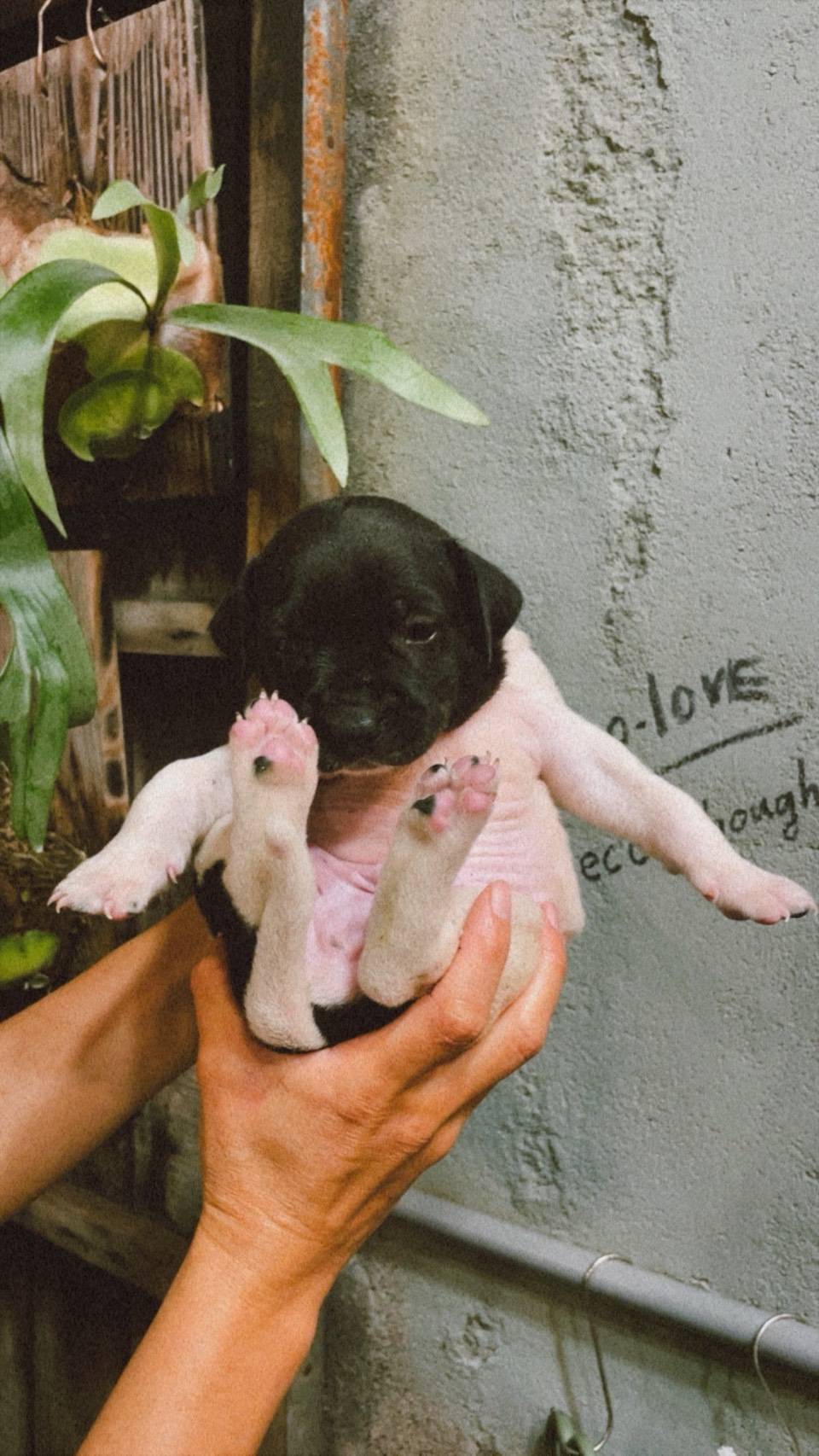 個性:淑芬,女生,嘴邊有一圈奶泡的小奶牛狗狗,喜歡抱抱安撫,是個黏人小可愛。