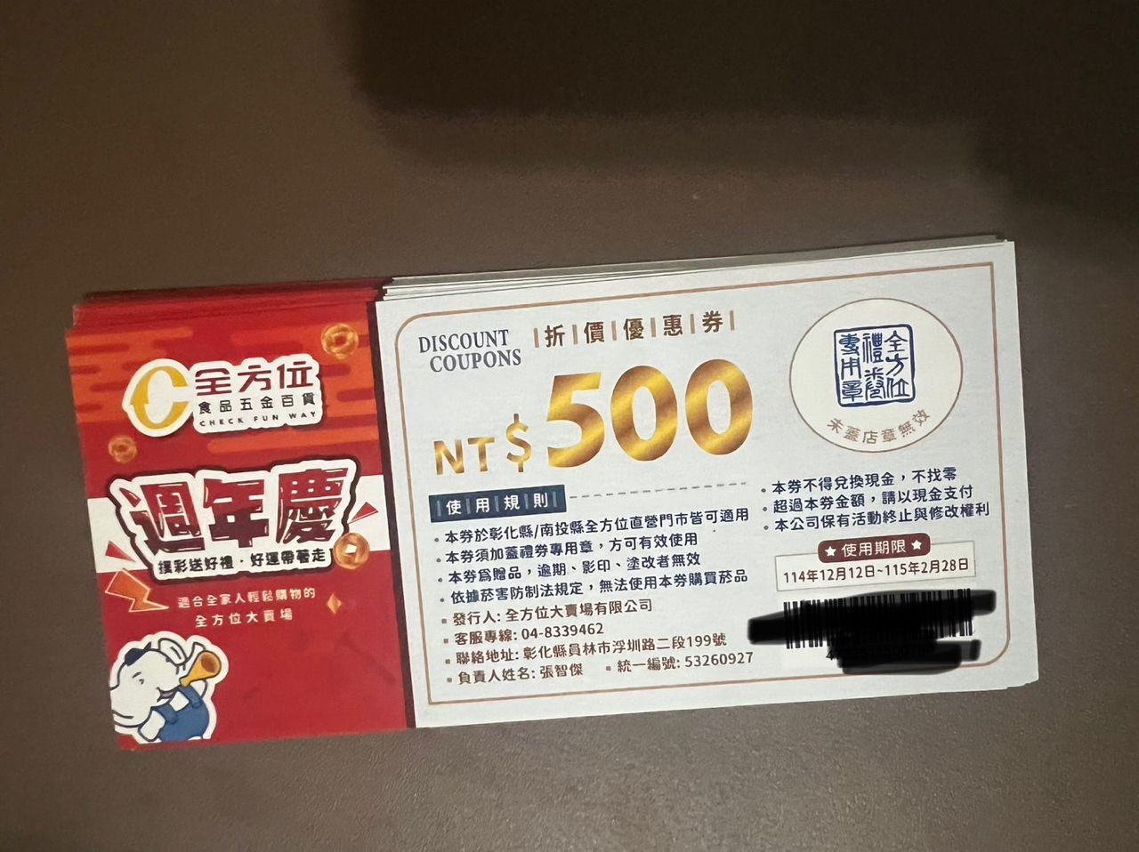 很幸運抽到全方位食品五金百貨連鎖大賣場的禮