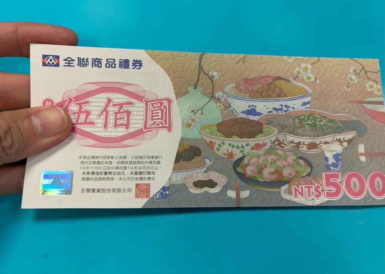 售 全聯禮券面額500,共20張,共一萬 95折=9500 限員林、彰化、鹿港面交,意者請私訊