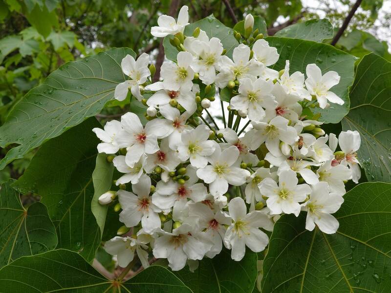 挑水古道油桐花大開,花形碩大。(米諾斯提供)