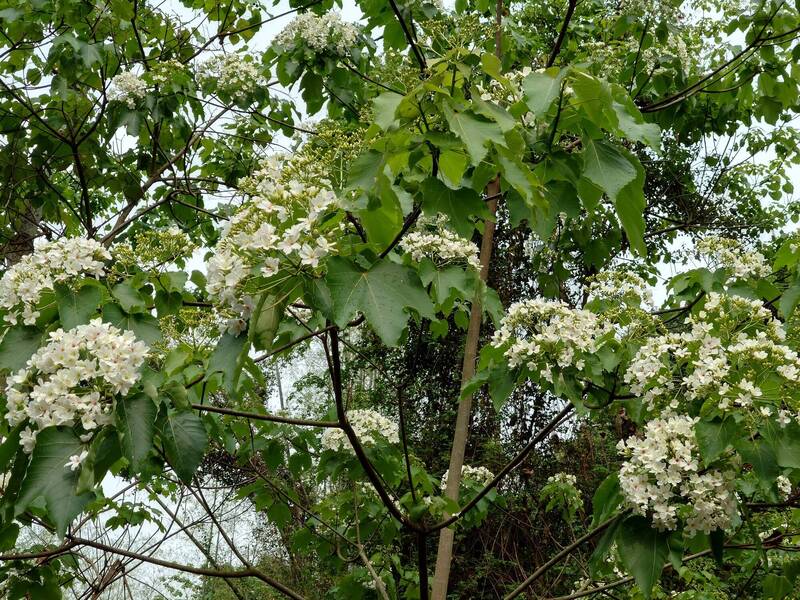 待放」的青桐。相較於藤山步道油桐花稀稀落落,彰化市日月山景農場、芬園鄉挑水古道