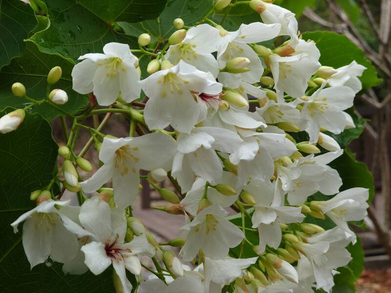 入4月初,就有好幾棵油桐樹大開6成,實在太令人意外,且花朵還開得特別大朵,與藤山