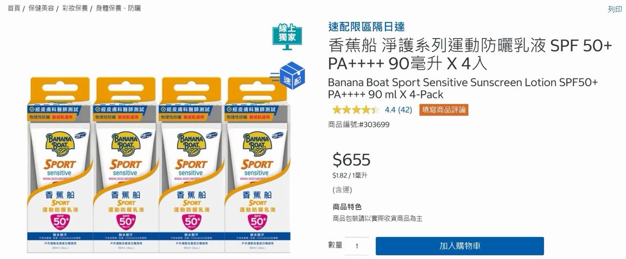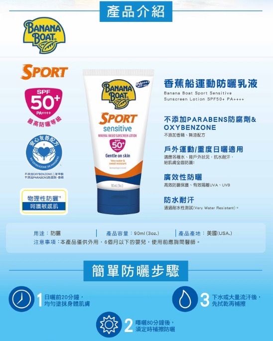 出售物:Costco 香蕉船 淨護系列運動防曬乳液 SPF 50+ PA++++ 90毫升 *2
