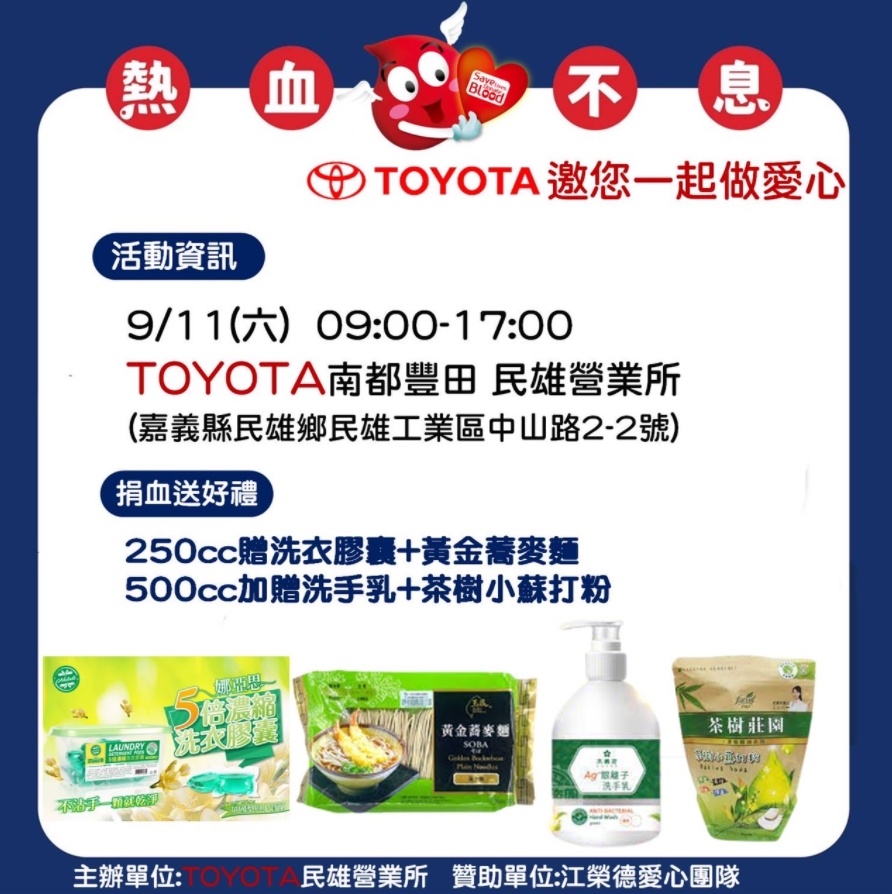 9/11 (六): TOYOTA南都豐田/民雄營業所(民雄工業區中山路2-2號)