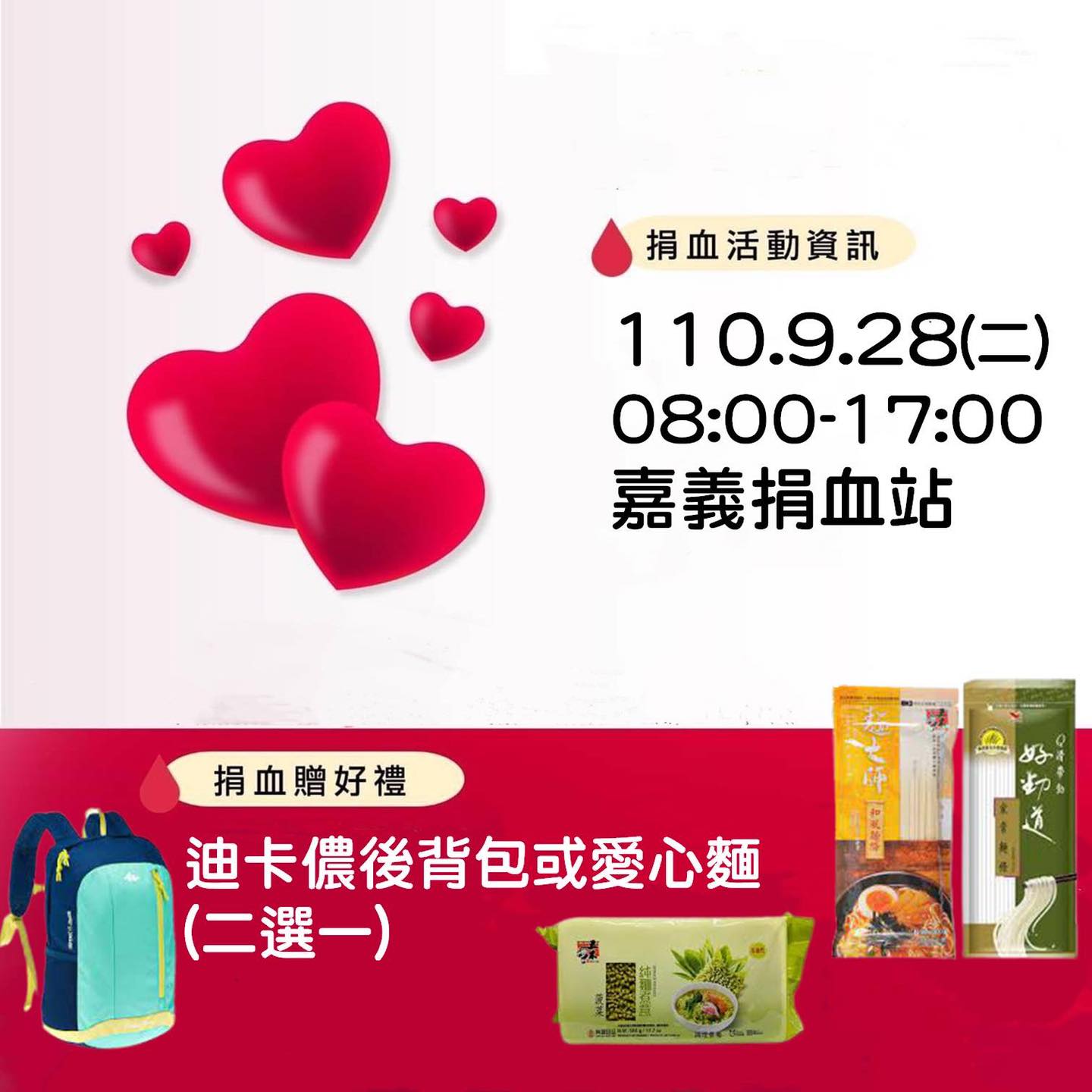 [情報] 9/28(二)嘉義捐血站送狄卡儂後背包or麵條