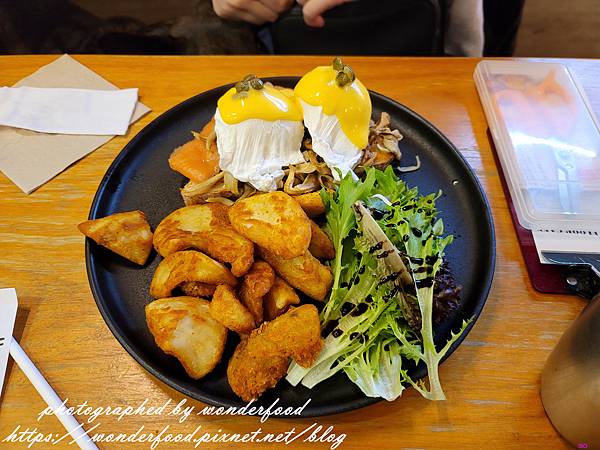 燻鮭魚班尼蛋奶油炒菇 470元