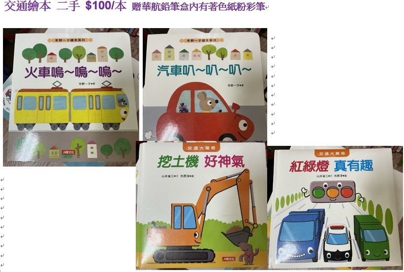4.交通繪本 二手 $100/本 贈華航鉛筆盒內有著色紙粉彩筆