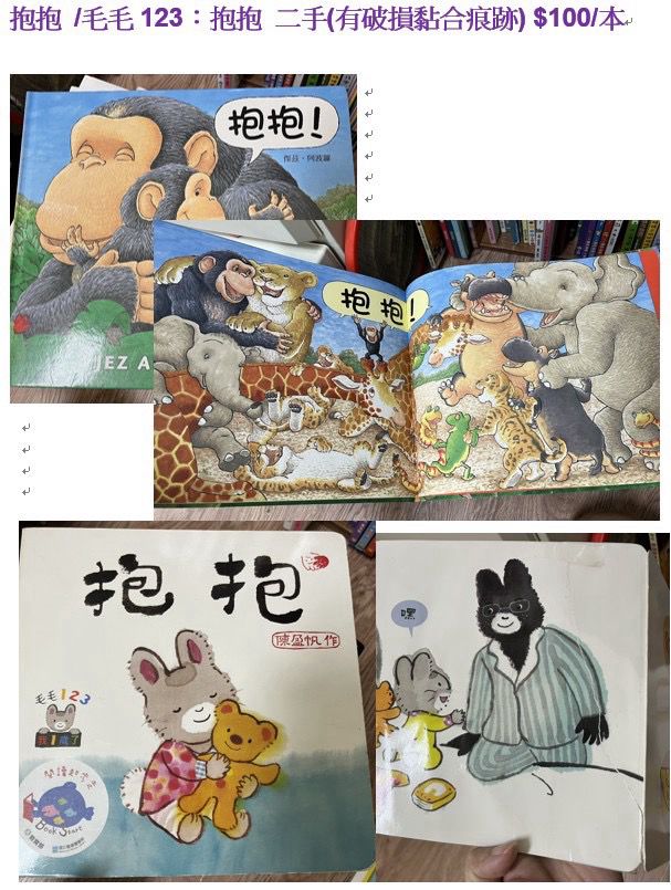5.抱抱 /毛毛123:抱抱 二手(有破損黏合痕跡) $100/本