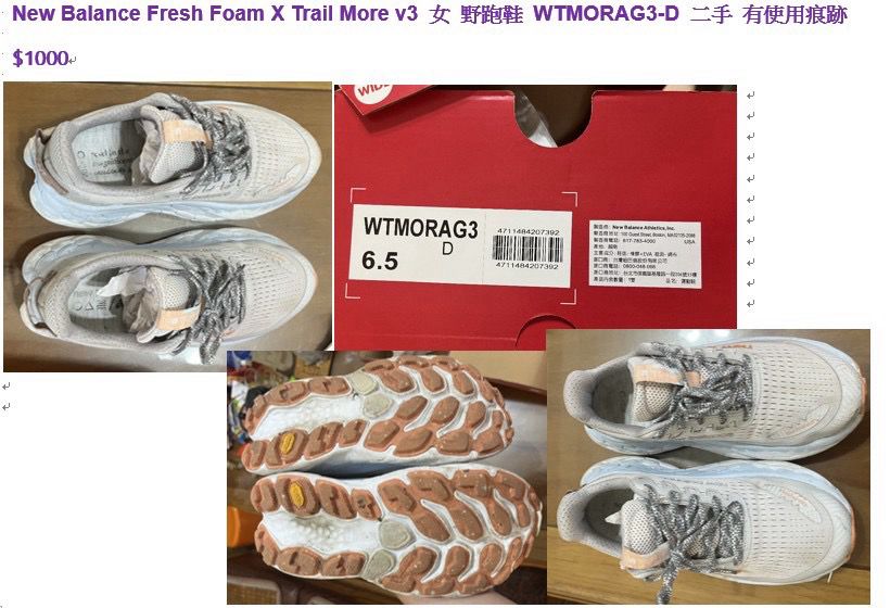 1.New Balance Fresh Foam X Trail More v3 女 野跑鞋 WTMORAG3-D 二手 有使用痕跡