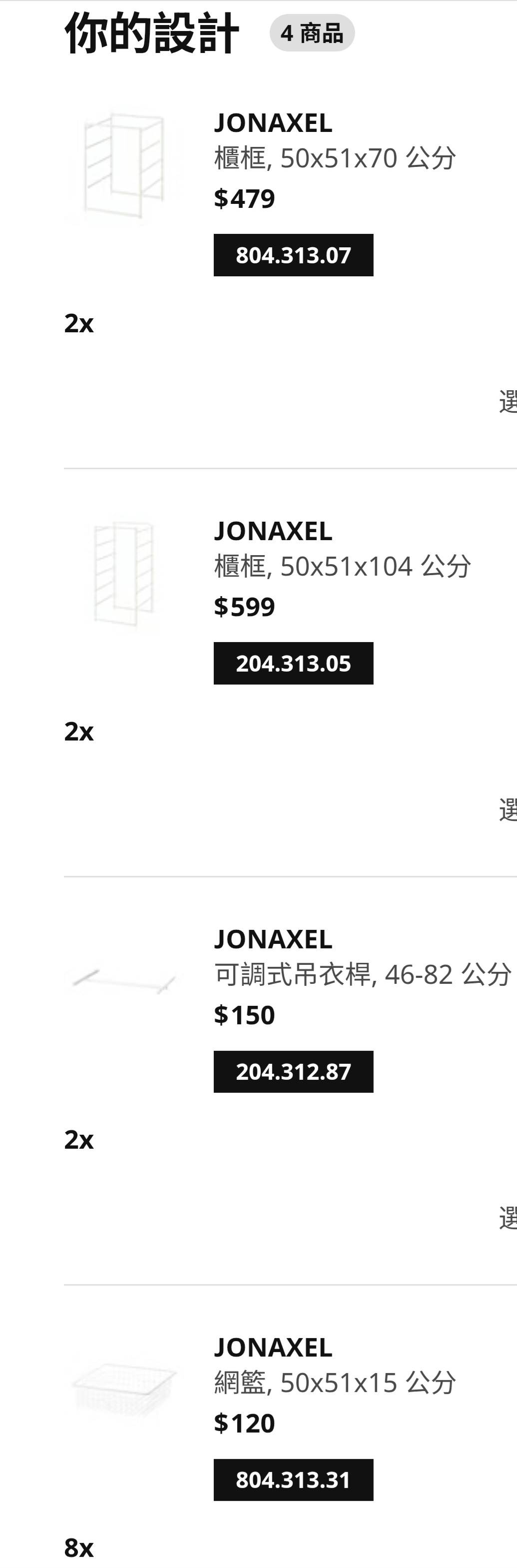 1.ikea jonaxel開放式衣櫃組,細項如圖,2024年初購買,整組售$2400(可議價)
