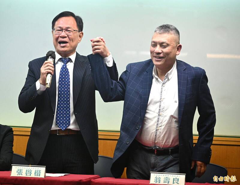 應。隨後張啓楷主動拉起翁壽良的手向媒體致意,強調「藍白是在一起的」,兩人聯手必
