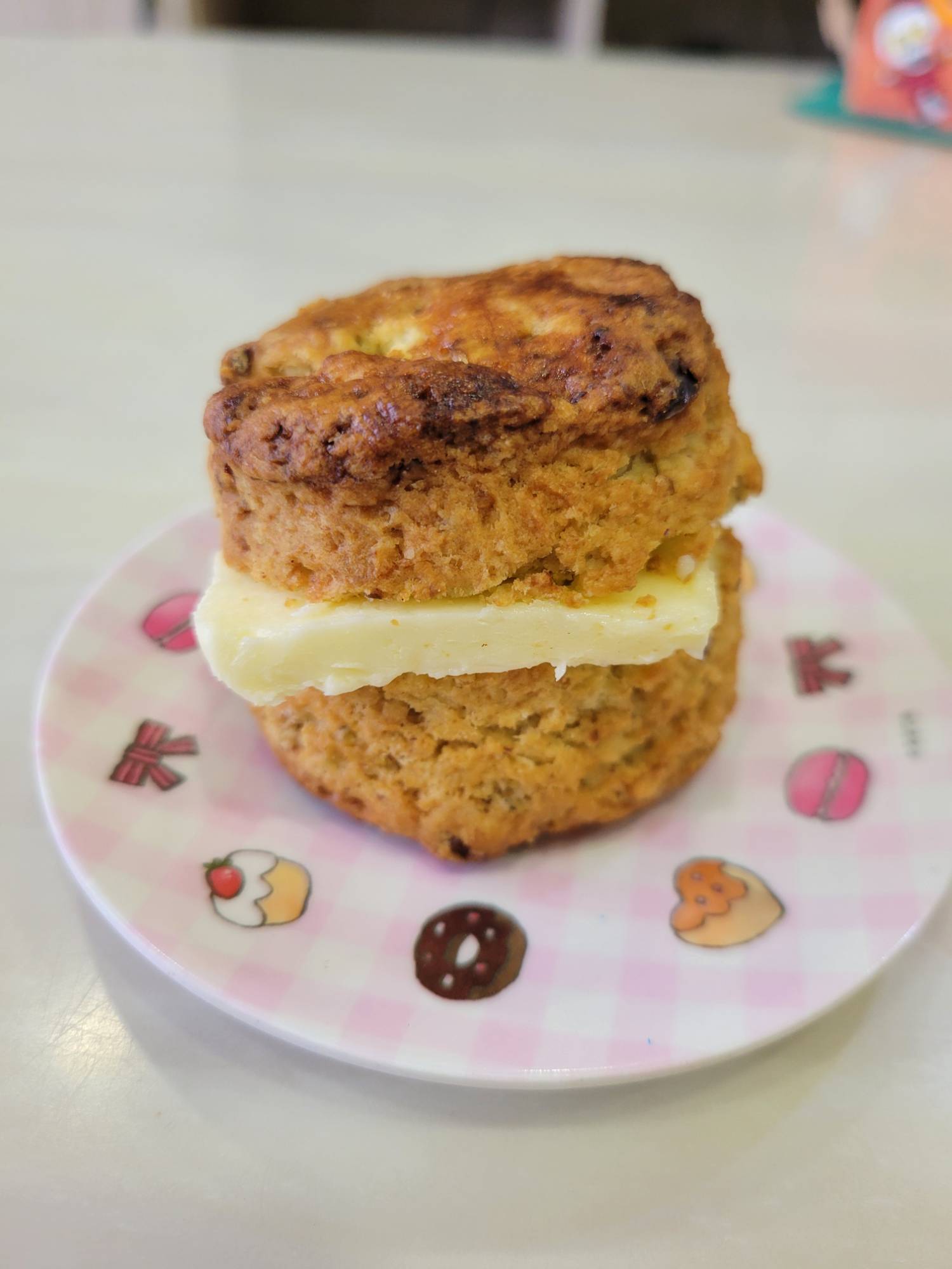 是菠蘿麵包換成了司康。奶油鹹度高成了滋味主角。司康能吃