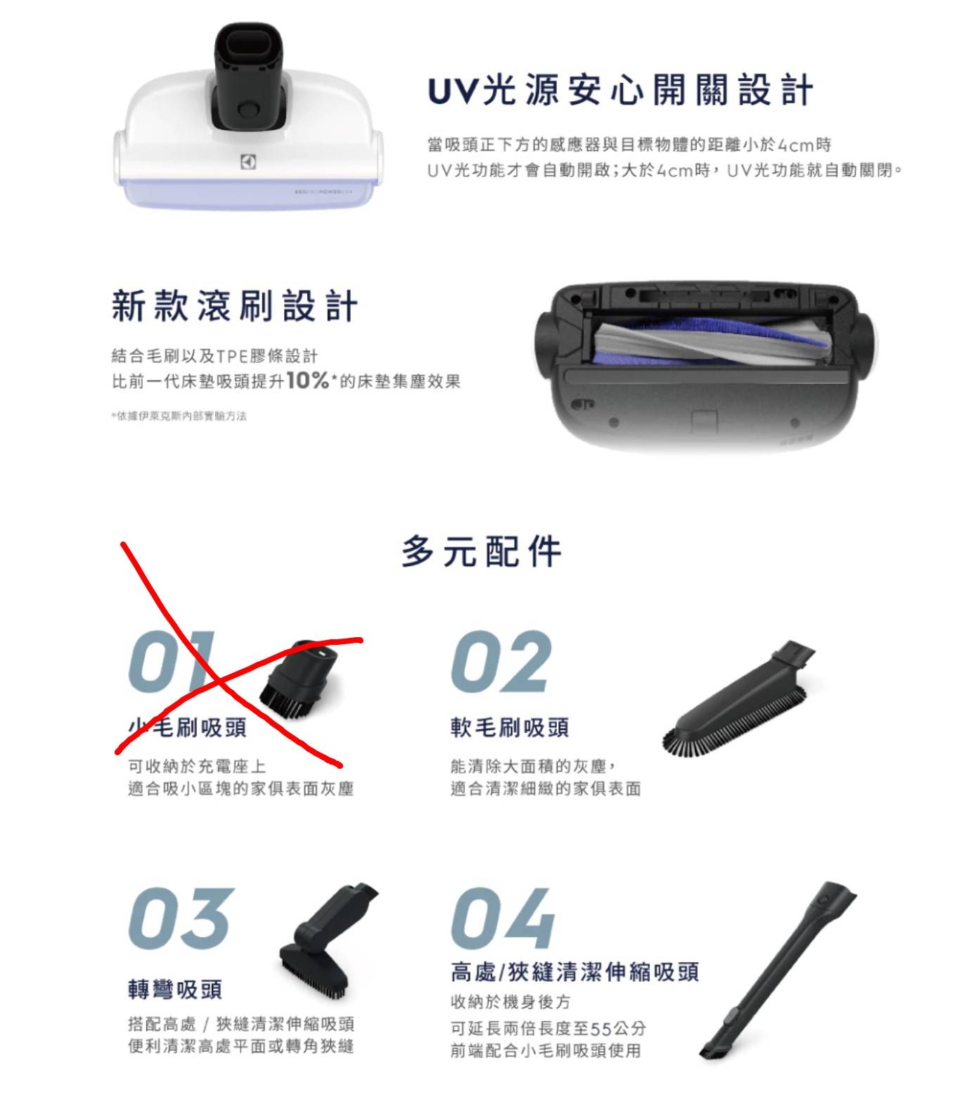 5種吸頭(只有1小毛刷找不到)+充電底座+變壓器