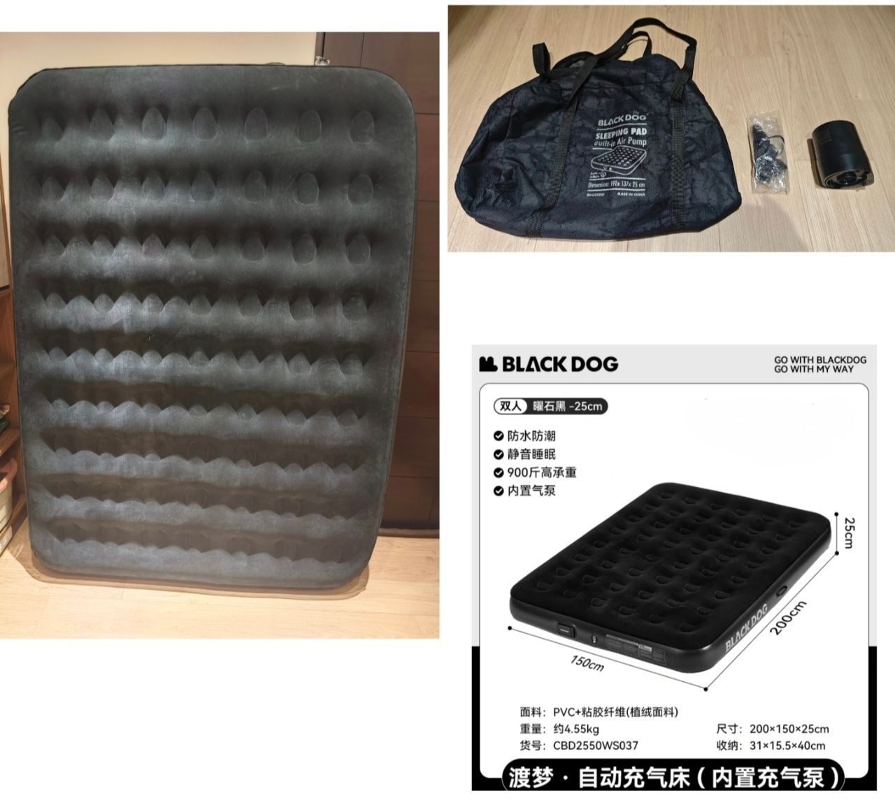 黑狗加厚雙人25cm頂級充氣睡墊