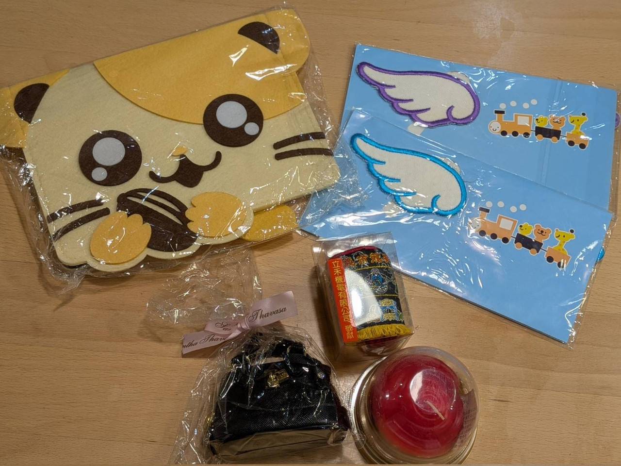 旅行用小熨斗、哈姆太郎書夾、小孩止汗小物、玫瑰造型蠟燭、