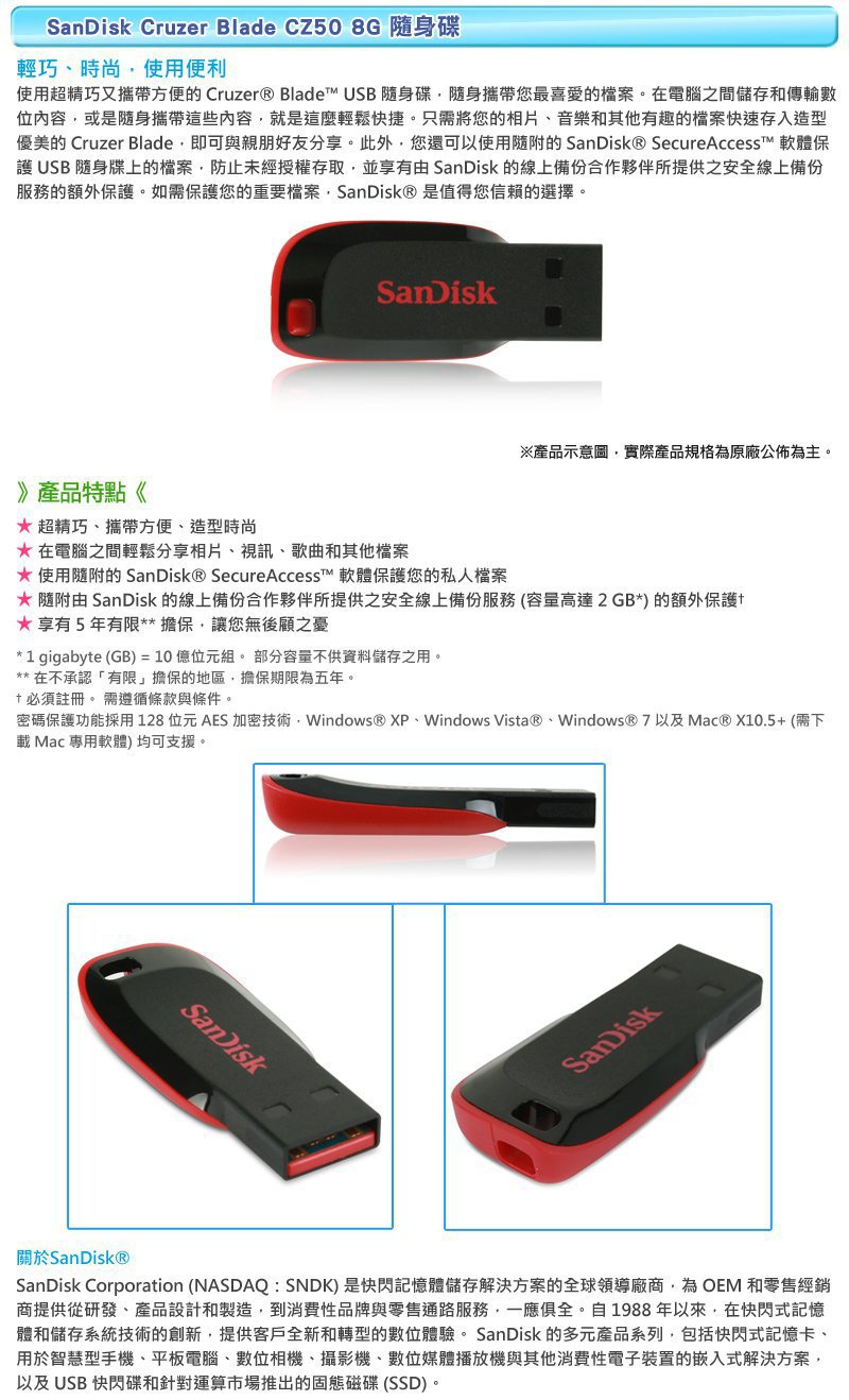 SanDisk 8G隨身碟 (全新)
