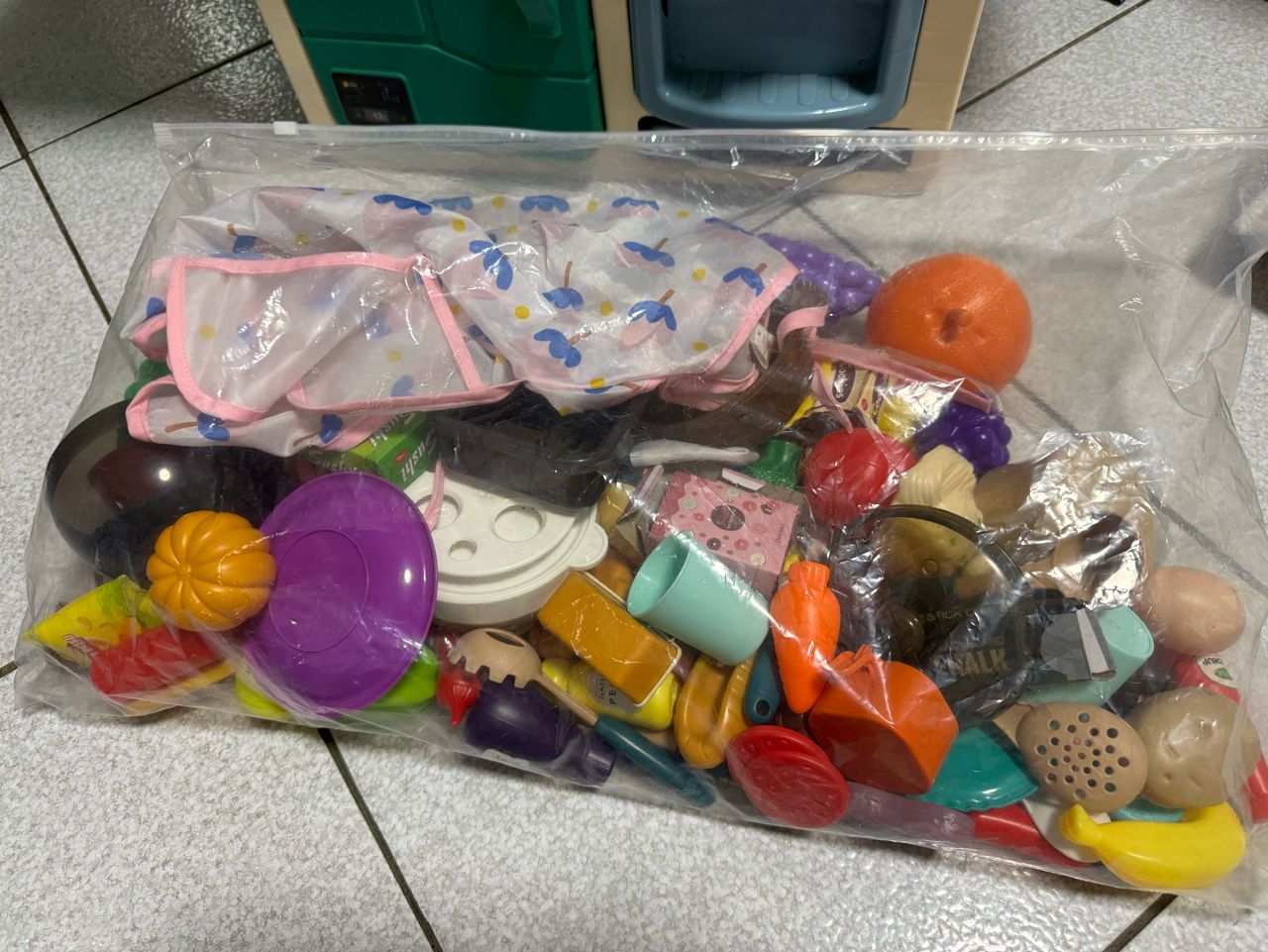 以及擦拭,未仔細清點是否缺件,但基本上沒有,且有多幾個別的廚房玩具的水果~
