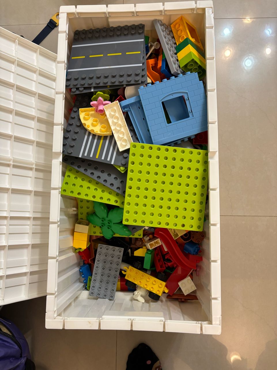 如果不需要積木會用塑膠袋裝取,積木為很多組混在一起,可能沒很完整,也無法提供組