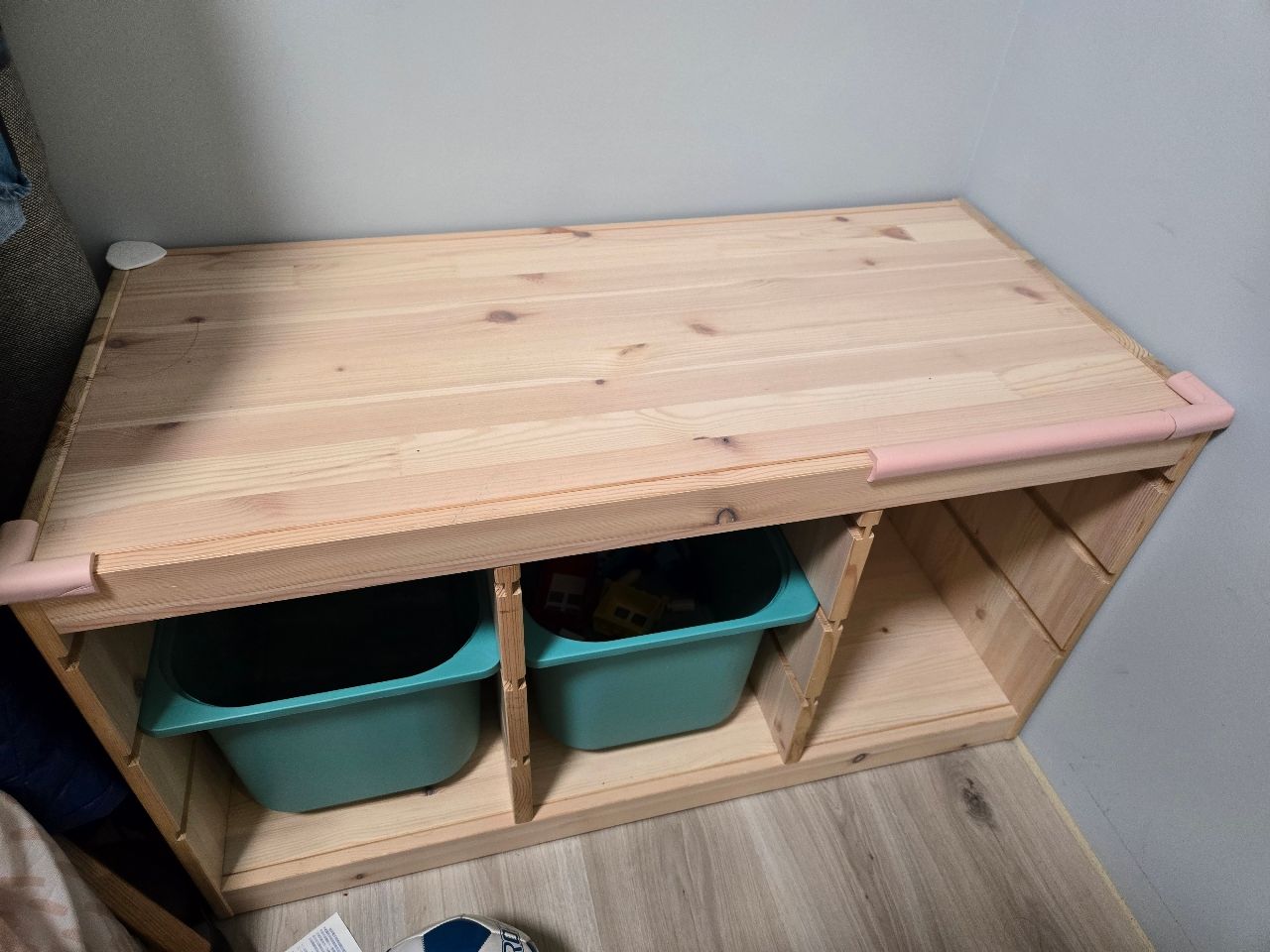 邊邊泡棉已黏死,含兩個玩具收納盒。