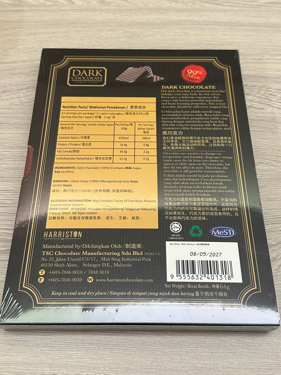商品名稱:Harriston 黑巧克力